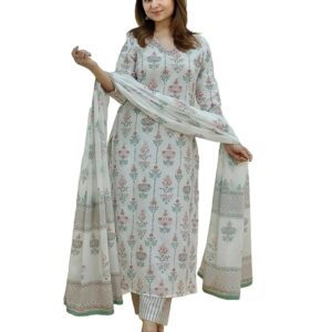 Women’s Cotton Printed Anarkali Kurta with Palazzo & Dupatta Set